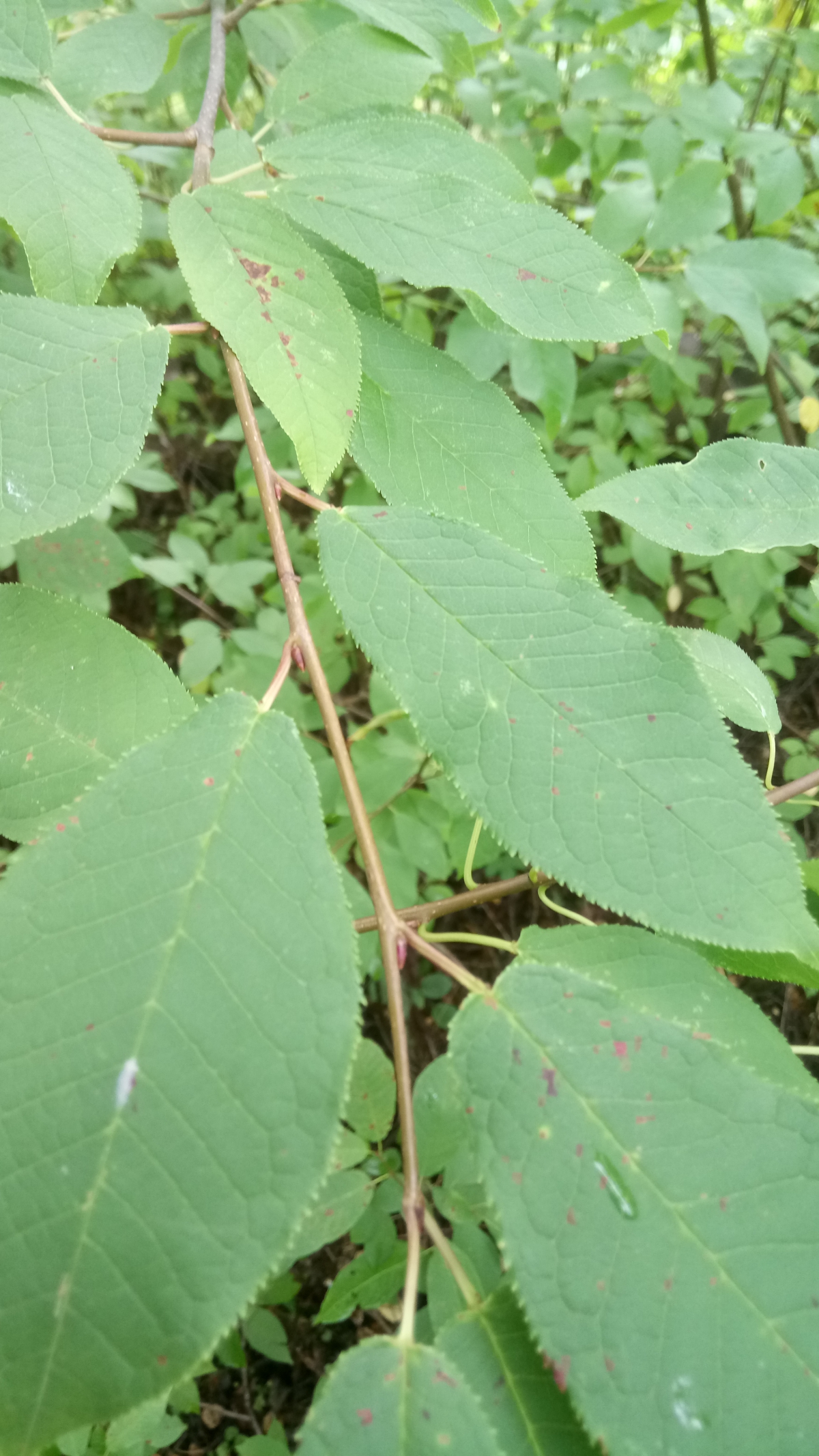 Baden tillhör sannolikt hägg (Prunus padus). Hägg förekommer i hela landet och får vita väldoftande blommor på våren.