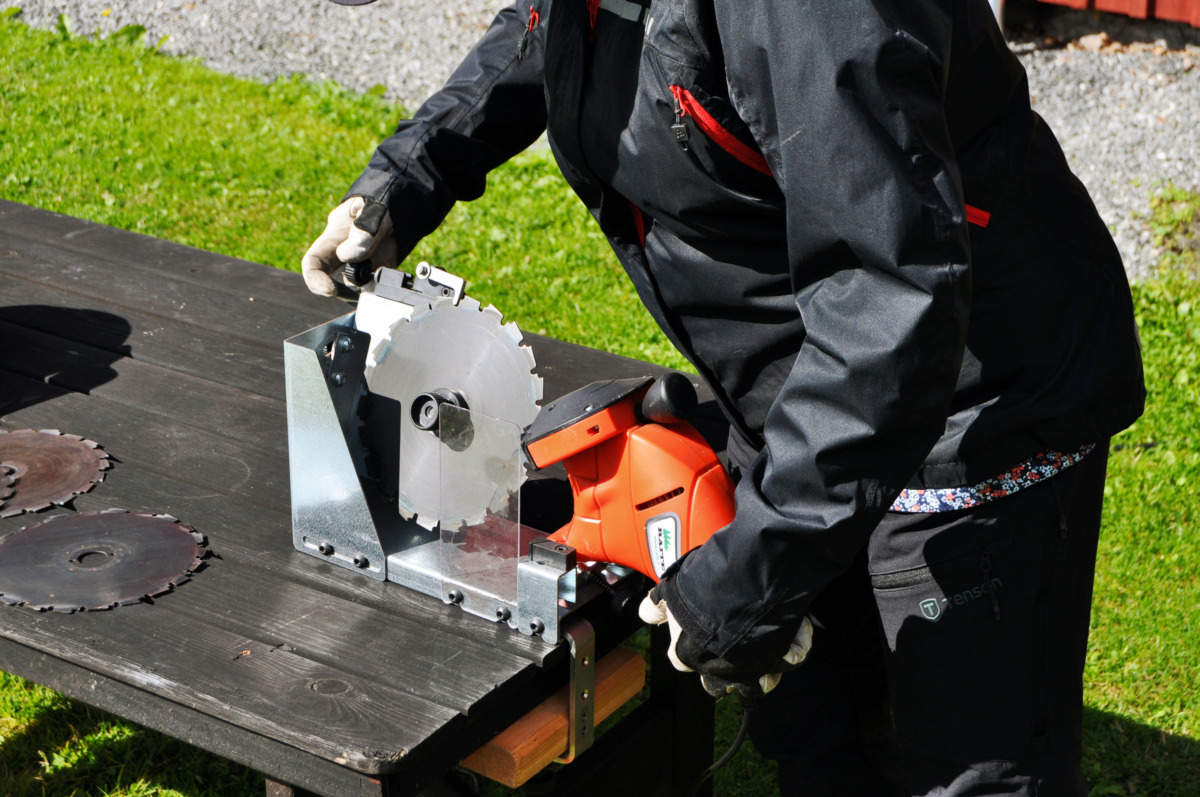 Enligt tillverkaren är Raite 2.0 konstruerad för att slipa röjsågklingor vars ytterdiameter är såväl 200 som 225 millimeter. Att slipa de mindre blev till slut nästan en vanesak för vårt testgäng. Däremot upplevde vi att maskinen inte var lika väl anpassad för de större klingorna.