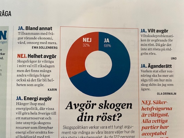 Det är så mycket mer än bara skog att ta hänsyn till hur jag kommer att rösta. Skola, omsorg och naturligtvis vår välfärd som under många år har reformerats, privatiserats vilket jag högst ogillar.