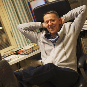 Jympaskor eller Graningekängor? Peter har alltid gillat att röra på sig och spelade fotboll och innebandy tills för några år sedan, när ett knä satte stopp. Att vara del av ett lag uppskattar han även på jobbet – att stämma av, diskutera, förändra. Under hans tid på SKOGEN har också mycket skett. Precis som i skogen har tekniken i tidningsvärlden utvecklats snabbt. Peter har ofta haft en nyckelroll, eller som han säger: