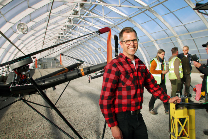 Airforestrys grundare och vd Olle Gelin förklarade hur det ska gå till att skörda och flyga ut hela träd med drönare.