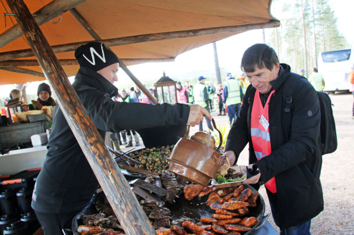 Fredrik Wigg från Wiggens catering serverade välsmakande luncher i fält båda dagarna. Här hugger Bil Karl-Erik Eriksson in på rostad potatis med sockerärter, svensk kyckling, revben från svensk gris och en pepparsås kryddad med rostad paprika.