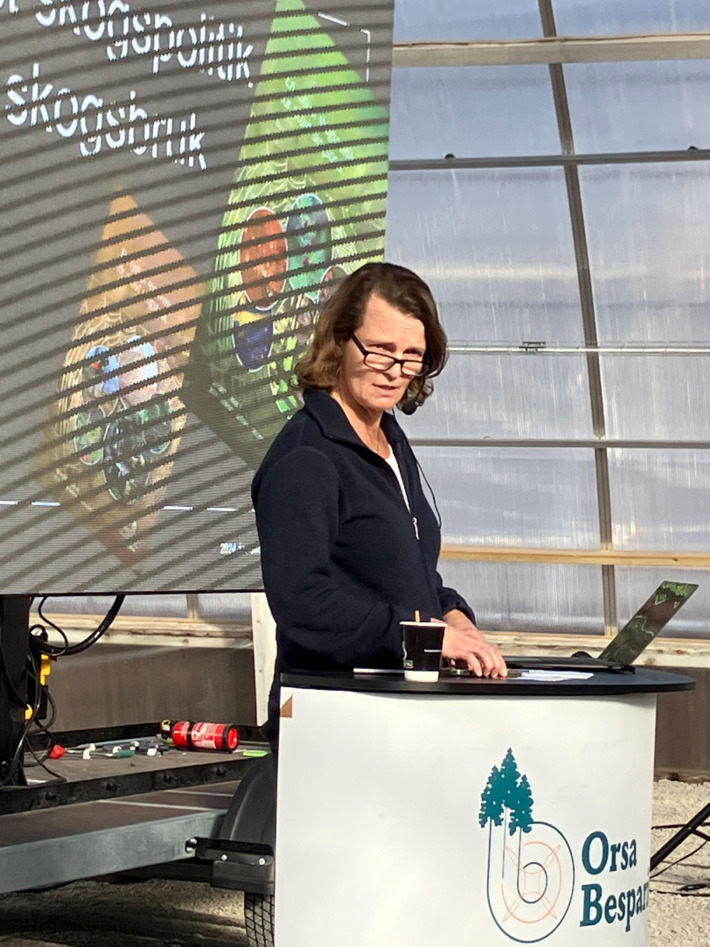 Caroline Rothpfeffer som var huvudsekreterare för den senaste skogsutredningen föredrog de viktigaste punkterna och svarade på frågor från exkursionsdeltagarna.