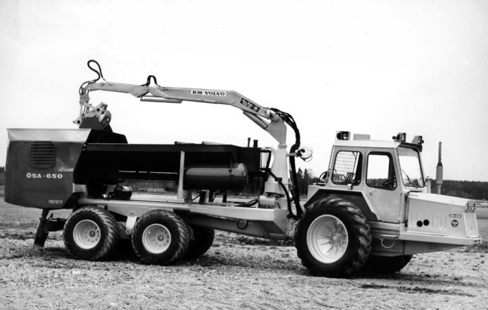 Skogsmaskintillverkaren Ösa har genom åren bidragit med flera lösningar för maskinell plantering. Här är prototypen till den tvåradiga planteringsmaskinen Ösa 650 som byggde på den modifierade skotaren SM 668 från 1968 och bemannades av två personer.