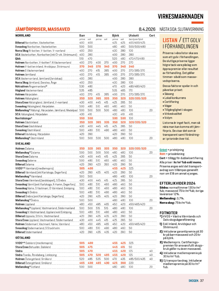 LÄS OCKSÅ: Birgitta Sennerdals kommentar till månadens prislistor och virkesmarknaden i stort.
