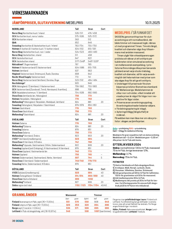 Här hittar du SKOGENs virkesprislistor för november. Klicka på bilderna nedan för att se dem i pdf-format.