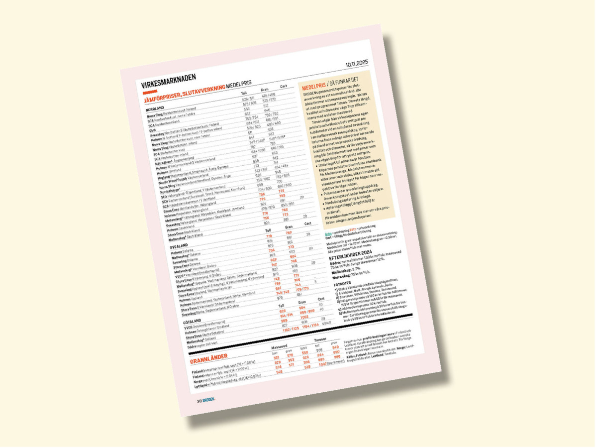 LÄS OCKSÅ: Birgitta Sennerdals kommentar till månadens prislistor och virkesmarknaden i stort.