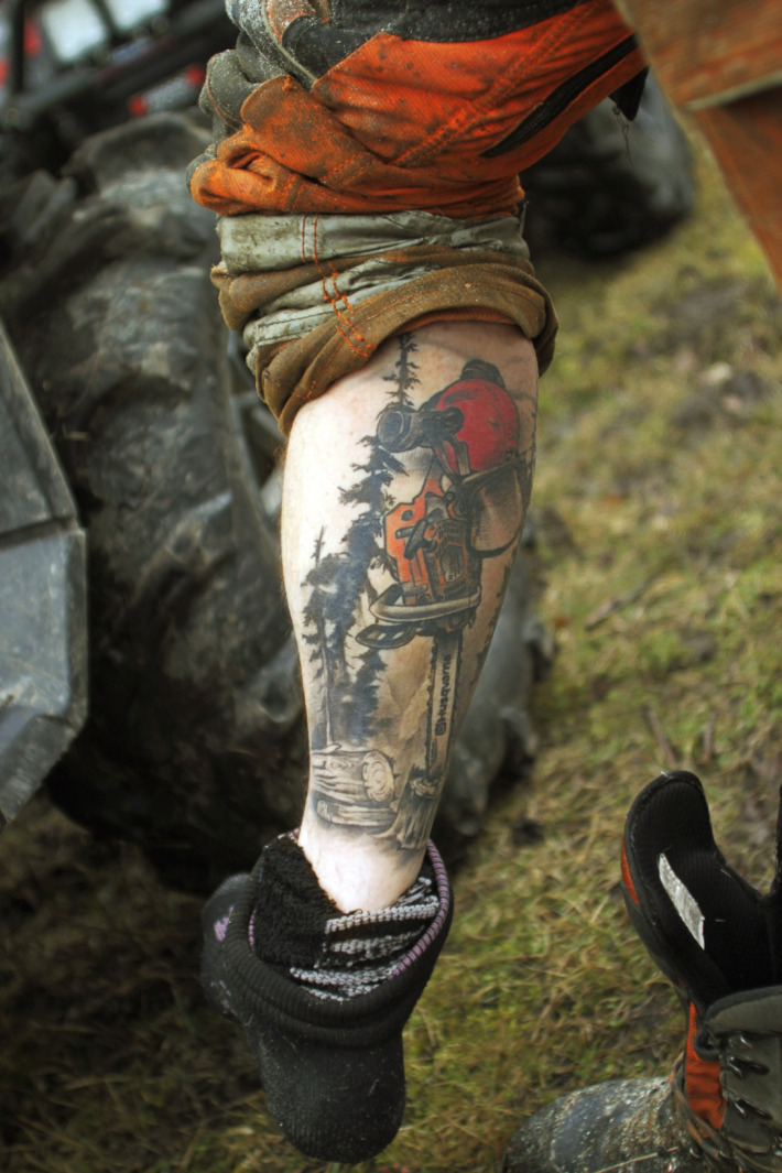Det är inte svårt att hitta den sista biten till skiftet där markägaren Martin Karlsson tillsammans med goda vänner håller till. Fyra högvarvande motorsågar och träd som dråsar i backen levererar en ljudbild av ihärdigt skogsarbete.