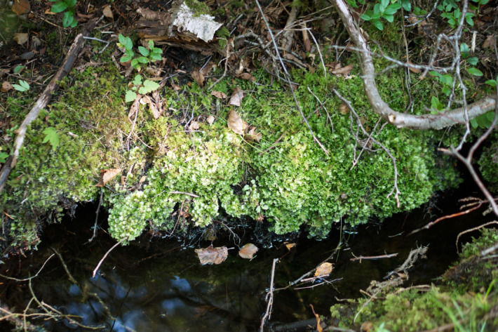 I kanten av ett vattendrag visar Ulf Johansson på några gröna små kuddar. Det är skirmossa – en sällsynt art som är Hallands landskapsmossa. Den är inte det enda skälet till att naturtypen skyddas, men ett tecken på ett finstämt samspel med alar och björkar som står riktigt soppigt.