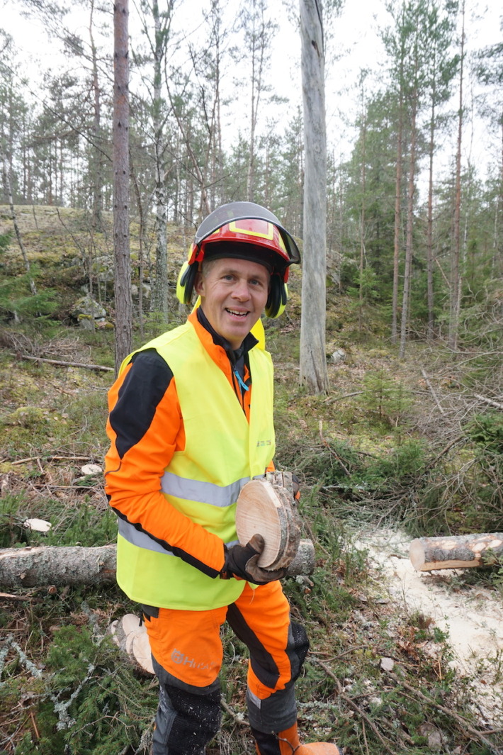Tomas Kronståhl (S) har många timmars motorsågning bakom sig i den egna skogen och tillhör dem som, enligt egen utsaga, behöver ”ändra gamla vanor”. Och jodå, läraren tipsade om att använda benen mer och hålla tummen på rätt plats.