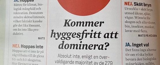 Ja, svarade 18 procent och 50 personer. Ett rungande nej kom från 82 procent och 229 personer.