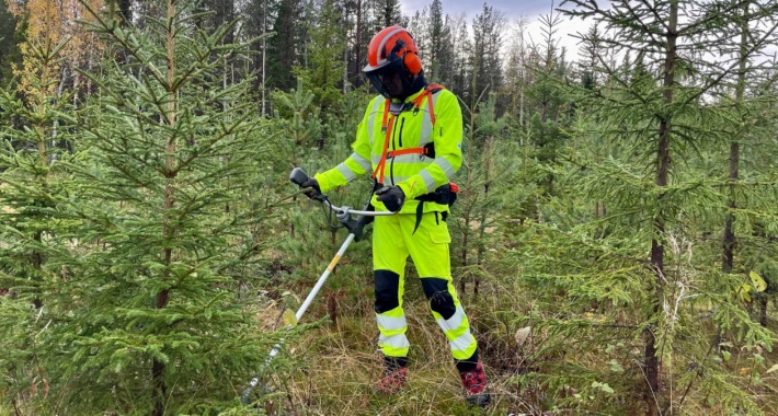 Timbermens röjbyxor väger endast 500 gram, alltså i stort sett bara en tredjedel av vikten hos många sågskyddsbyxor på marknaden. Dessutom är de alltså utformade för sin uppgift, vilket bland annat innebär att de har en särskild vaddering på höger höft, där röjsågen vilar. Det ökar bekvämligheten under långa arbetspass.
