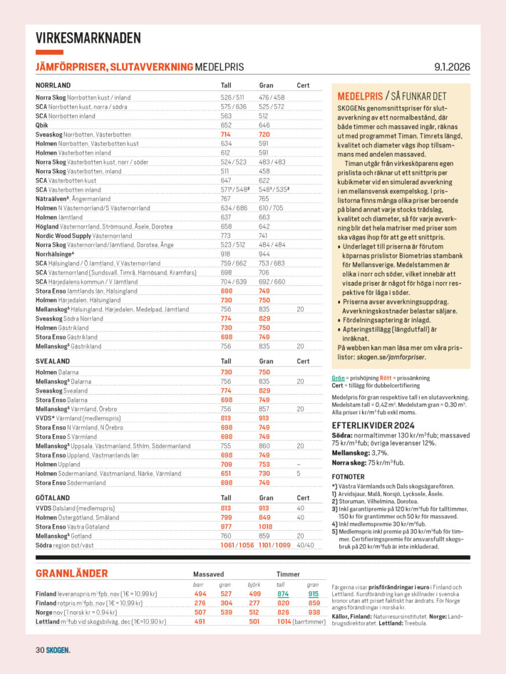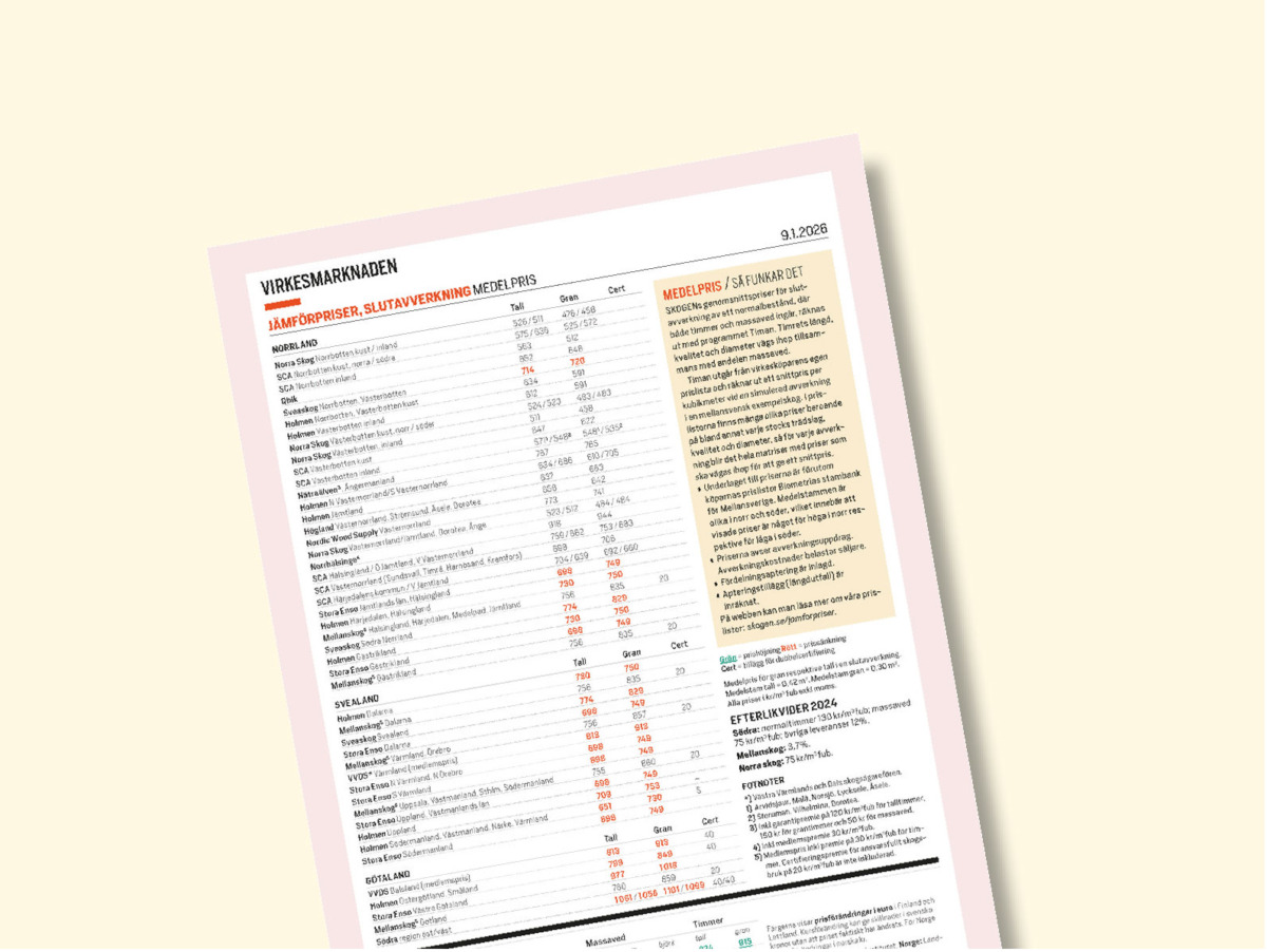 Här hittar du SKOGENs virkesprislistor för januari. Klicka på bilderna nedan för att se dem i pdf-format.