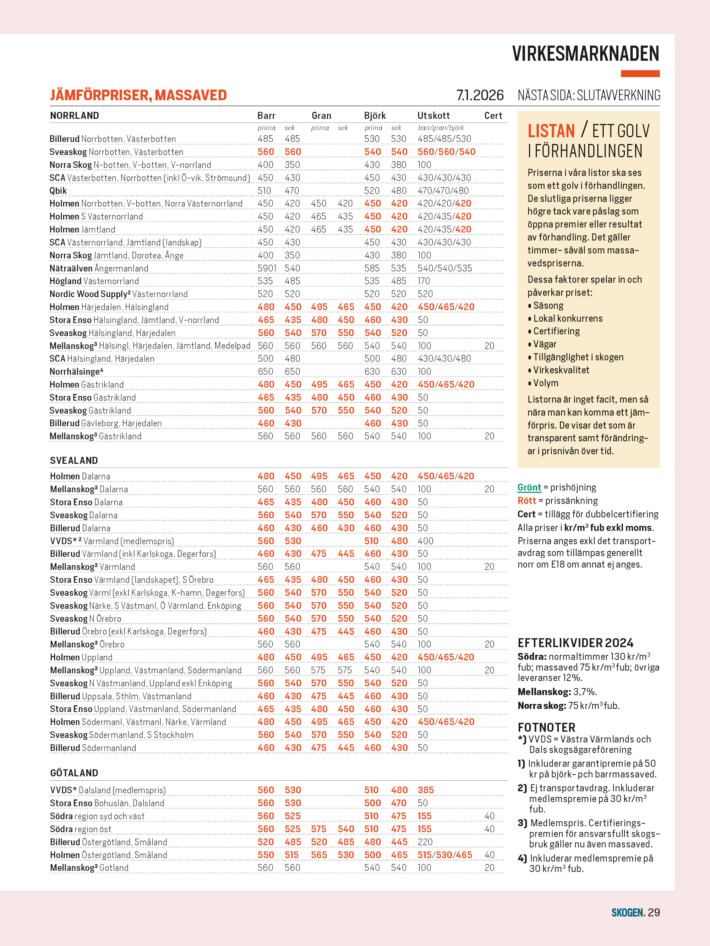 LÄS OCKSÅ: Birgitta Sennerdals kommentar till månadens prislistor och virkesmarknaden i stort.