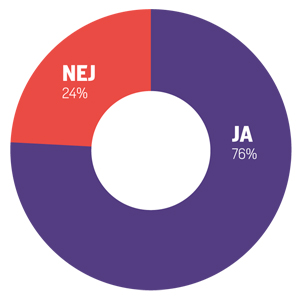 CirkeldiagramGer din skog andra värden än virkesintäkter? 76% svarade ja. Nästan en fjärdel sade nej, men bara några få ville motivera det. 63 personer svarade.