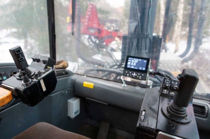 Mycket av lösningen för att konvertera skotaren till kombimaskin har Thomas gjort själv. På en halvtimma kan han sedan förvandla tillbaka skördaren till en skotare igen och köra ut stockarna till bilväg.