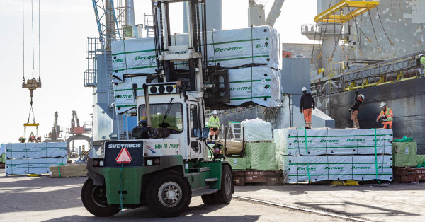 Virket kommer från Deromes sågverk i Kinnared, ett av koncernens fem sågverk. Destination är Lake Charles i Louisiana för vidare transport till främst hustillverkare i Texas och Louisiana.