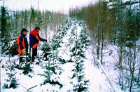 Träden i stickvägen ska avverkas unga. Stammarna är klena och virket blir dyrt. Bröderna Eriksson planterar julgranar i stället. Eftersom stickvägarna planeras redan på hygget blir det ingen tvekan om var granarna ska sättas.