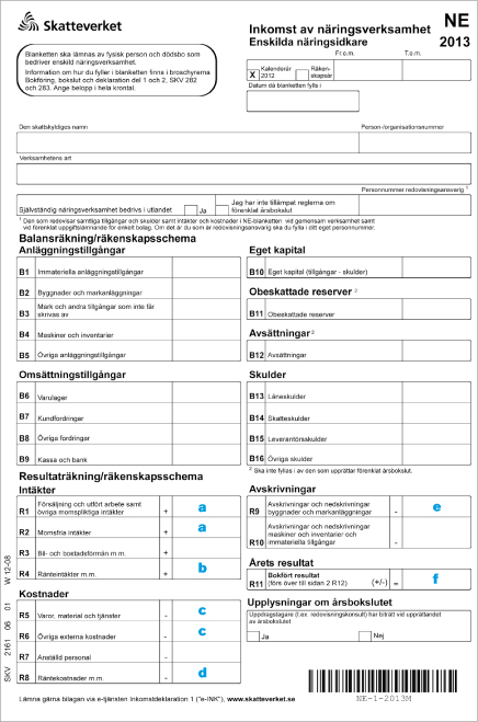 Senast 2 maj, skall inkomstdeklarationen vara inlämnad till Skatteverket  såvida man inte har anstånd med deklarationen. Använd blankett NE, den för enskild näringsverksamhet.