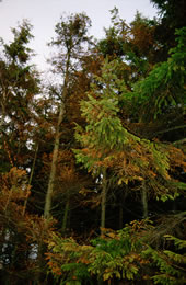 Hans-Örjan Nohrstedt, SkogForsk, avslöjade att många av de skötselråd mot urlakning som ges bygger på rena antaganden eller utländska studier. I Sverige har ingen visat att trädbårder mot vattendrag ger mindre urlakning till vattnet, att utspridning av hyggesris ger mindre urlakning totalt sett, att markberedning ger mer urlakning totalt sett eller att en skärm verkligen bromsar urlakningen under hyggesfasen. Flera forskare instämde i att försurning och kvävemättnad ur skogsproduktionssynpunkt inte är några akuta problem i stora områden. —I våra studier finns inget som tyder på att närningsurlakning och försurning ger minskad tillväxt idag, konstaterade Göran Örlander, SLU. —Kalkning och vitaliseringsgödsling har hittills inte givit någon positiv effekt på kådrinning, kronutglesning eller tillväxt, fyllde Ulf Sikström, SkogForsk på. Däremot är kådflödet ganska tydligt kopplat till torkan enligt Göran Örlander.